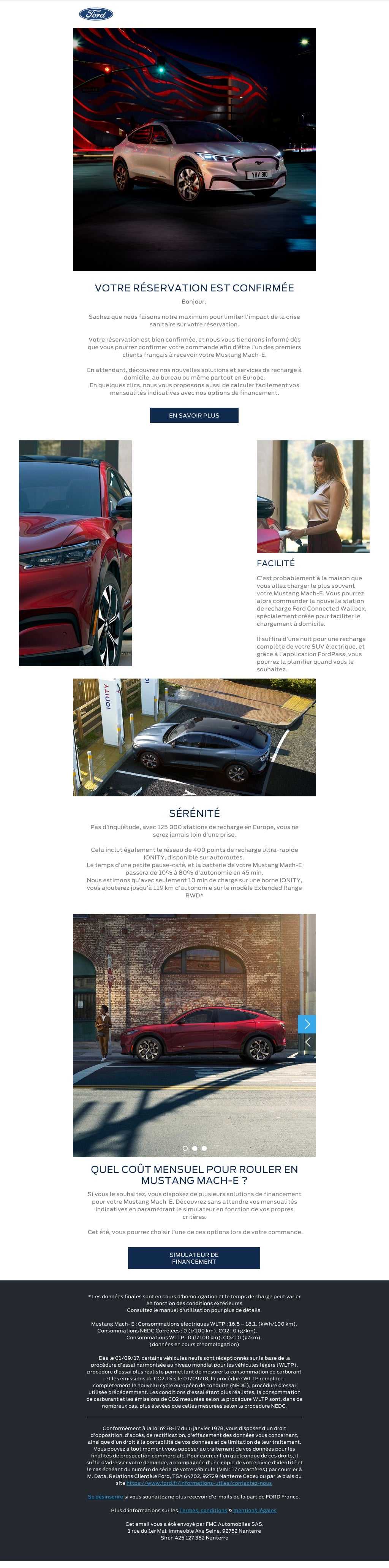Your reservation is well confirmed, and we will keep you informed as soon as you can confirm your order in order to be one of the first French customers to receive your Mustang Mach-E.